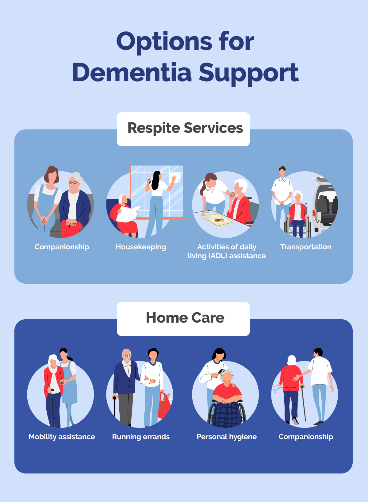 Personal care services help people with dementia who may have difficulties performing day-to-day activities. This service option allows people with dementia to remain in their own homes, where they may feel safer and more comfortable. It’s ideal for patients and families who prefer not to transfer to a nursing home or assisted living.