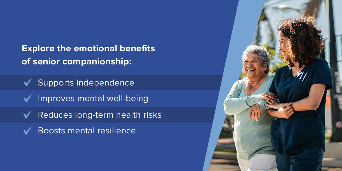 - Boosts mental resilience: Regular support from companions ensures that your loved one can cope better with stress and emotional pressures. For example, feeling less isolated and increasing social support helps seniors deal with chronic illness.