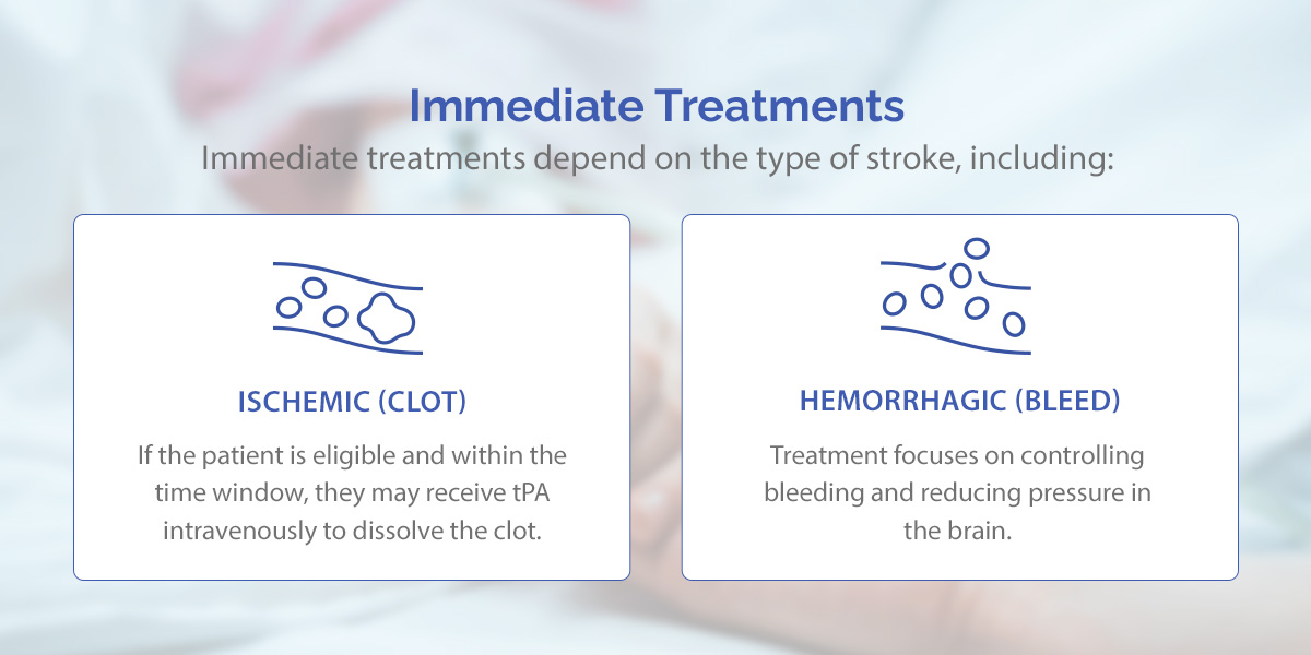 Immediate treatments depend on the type of stroke, including: